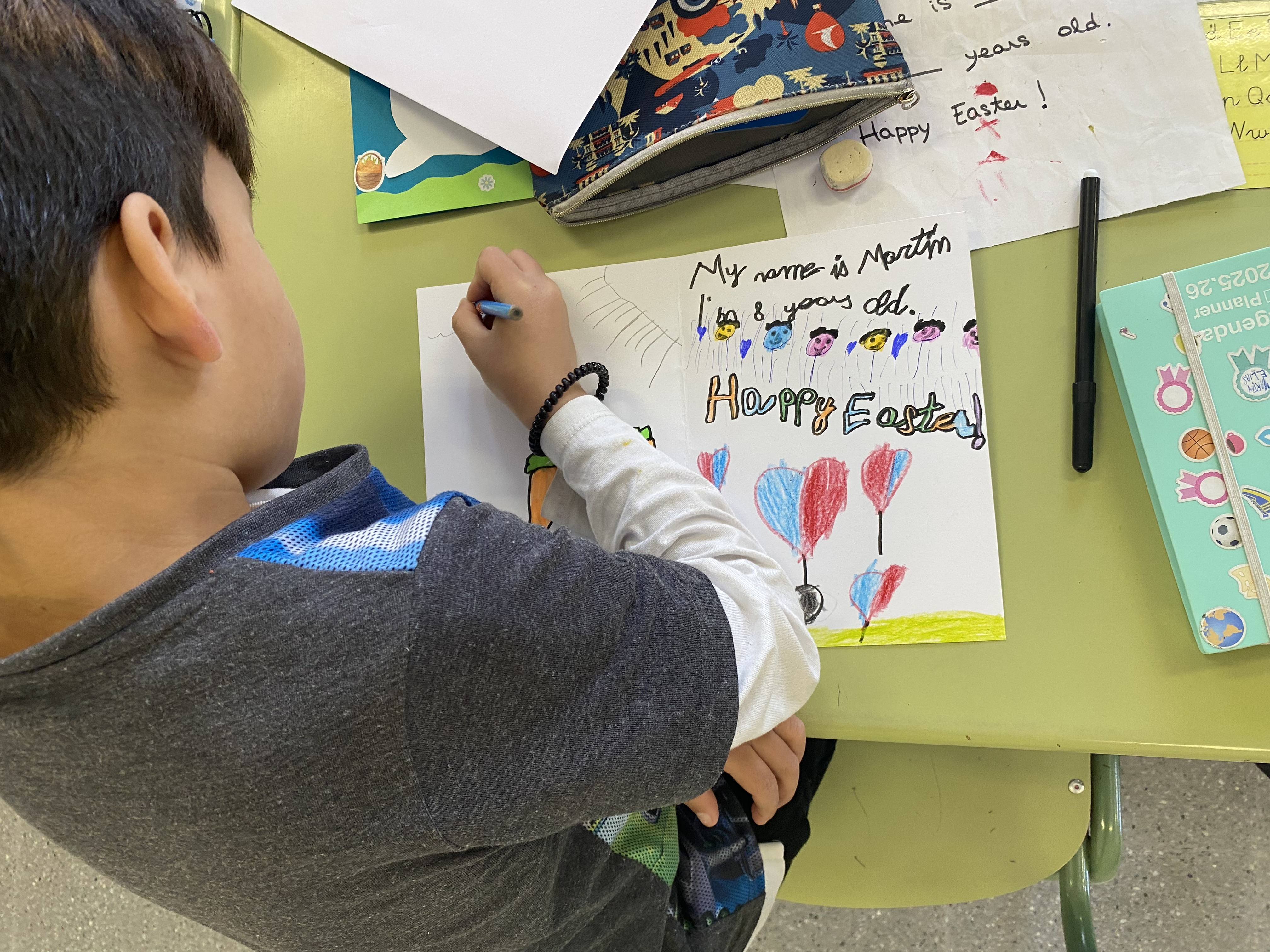 Hace unos días recibimos con mucha ilusión sus tarjetas, llenas de color, creatividad y mensajes en inglés. Nuestros/as niños/as disfrutaron leyendo cada una de ellas y descubriendo cómo sus compañeros/as se habían expresado.