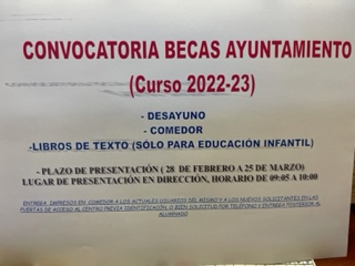 BECAS DESAYUNO, COMEDOR Y LIBROS EDUCACIÓN INFANTIL