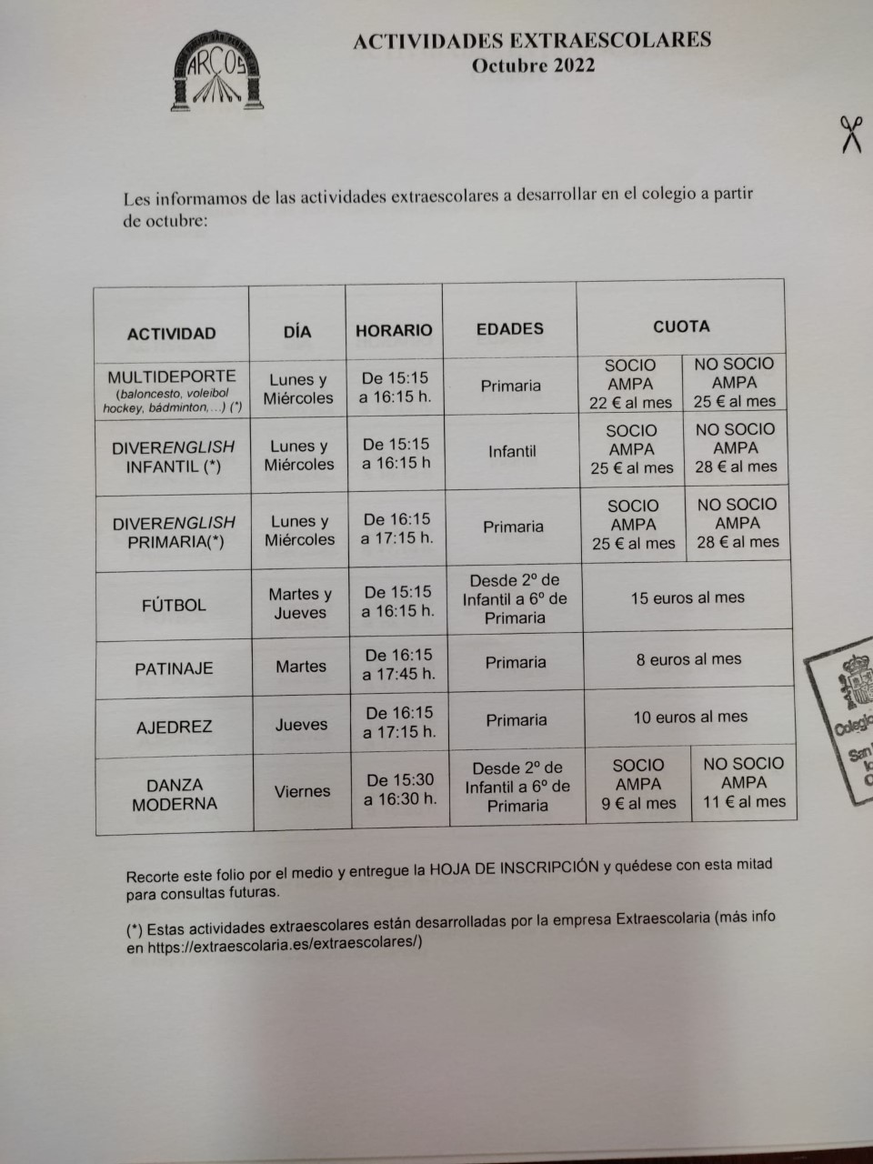 SOCIOS AMPA 9e/mes NO SOCIOS 11e/mes |