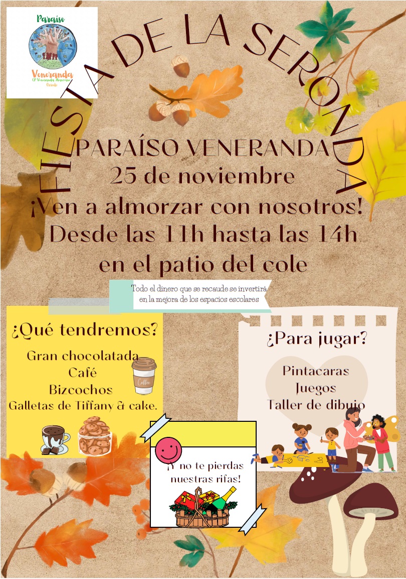 El próximo sÁbado 25 de noviembre celebraremos la fiesta de la seronda a cargo de "PARAÍSO VENERANDA". Os dejamos el cartel informativo con el programa y los colaboradores de esta convocatoria.