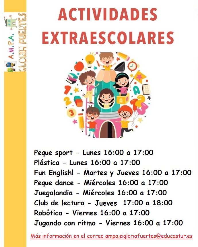 Para recoger las hojas inscripción al AMPA y a las actividades extraescolares se podrá hacer en el siguiente horario.