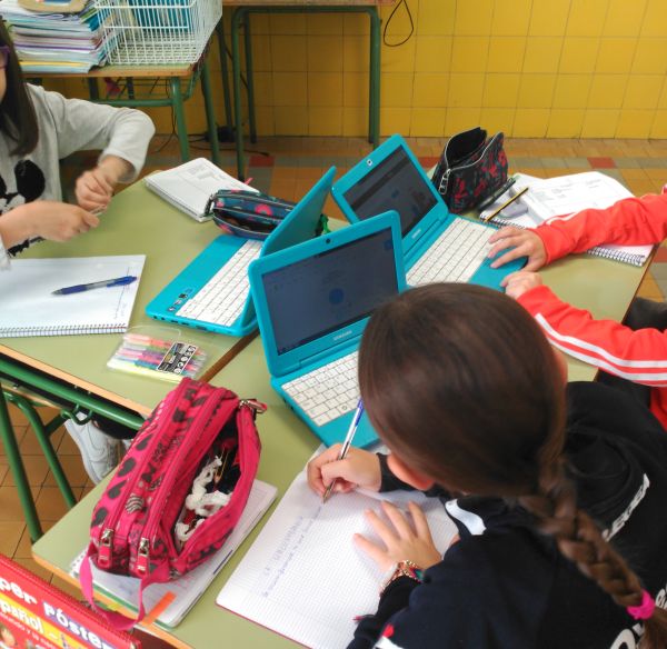 En todas las aulas de primaria hay una dotación de varios minis que son utilizados por el alumnado para consultas, realizar trabajos, hacer ejercicios, etc.