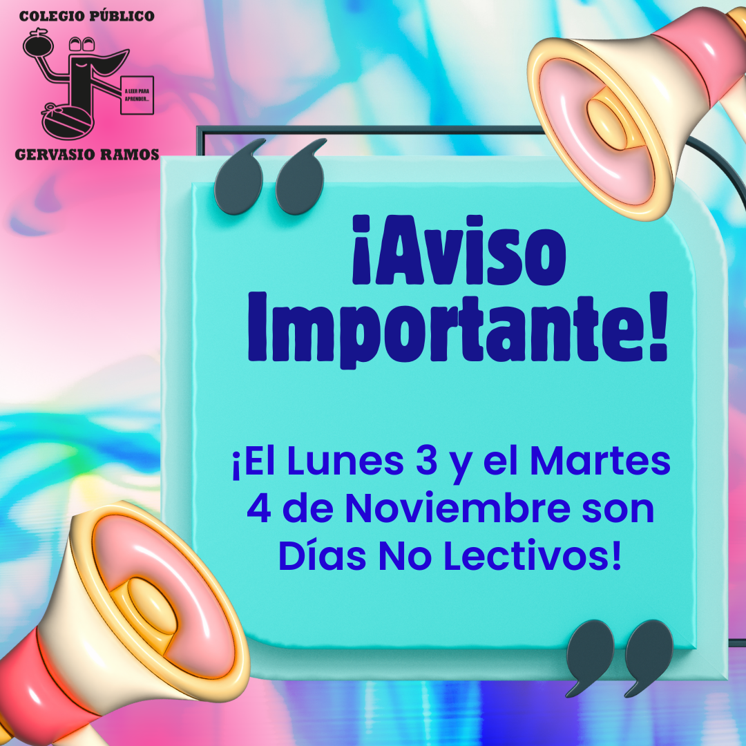Según el Calendario Escolar para el curso 2025-2026, los dáis 3 y 4 de noviembre No son Lectivos.