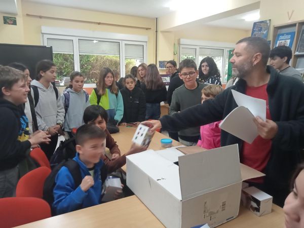 El alumnado con mejor puntuación en el concurso organizado por los Erasmus Days 2025 recibió unos obsequios en una pequeña ceremonia realizada en la biblioteca del IES.
