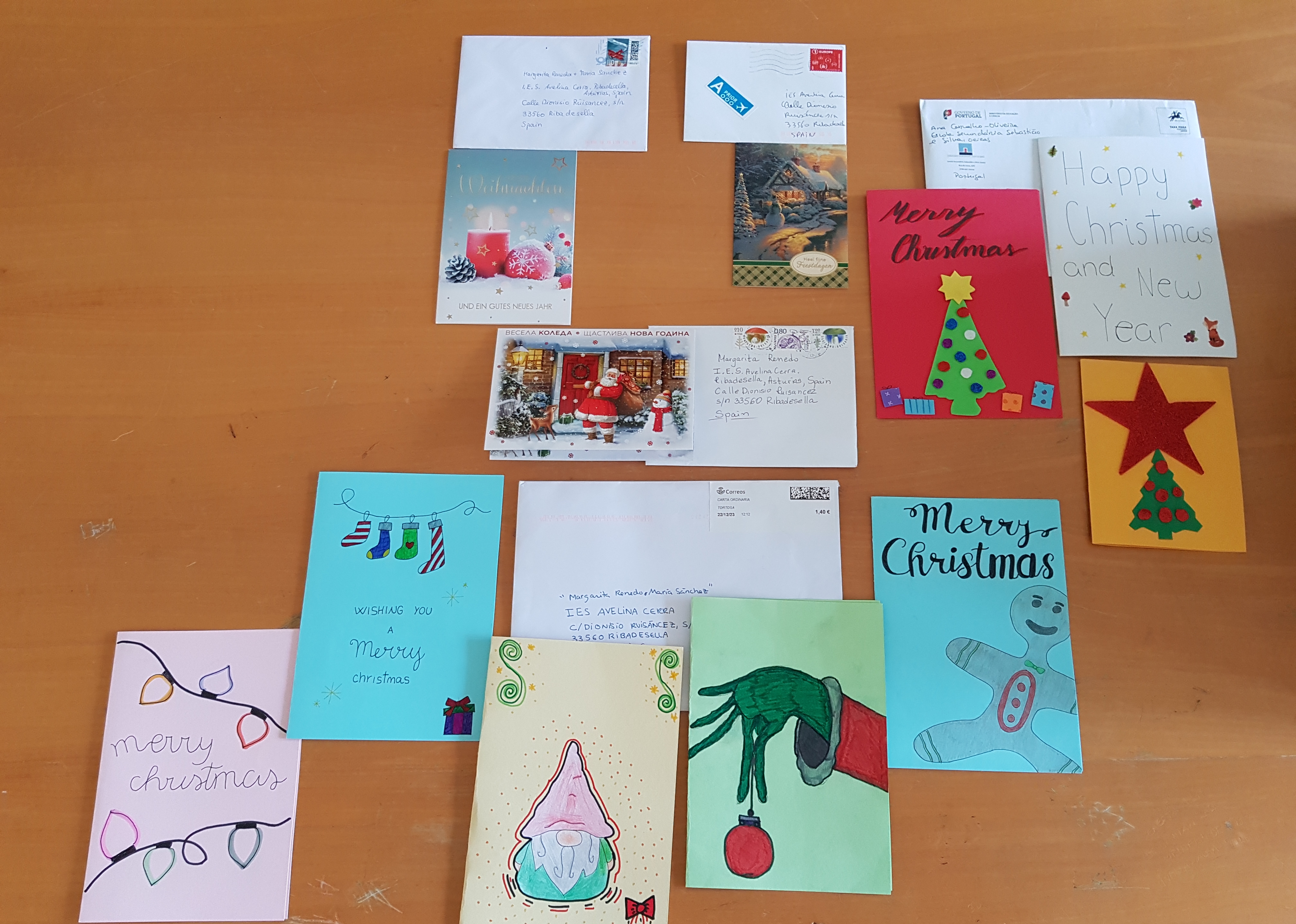 Terminamos el primer trimestre intercambiando vía correo postal postales navideñas hechas por los propios alumnos del proyecto.