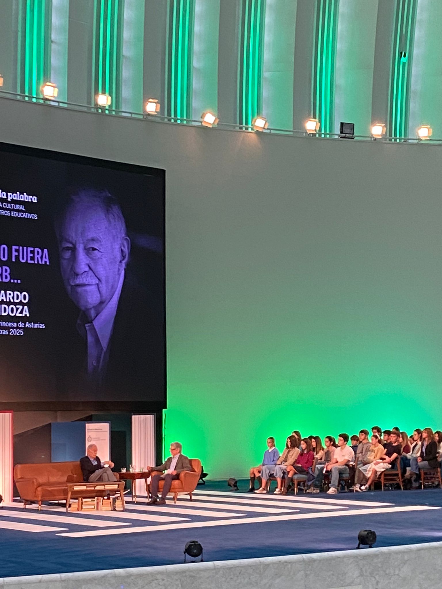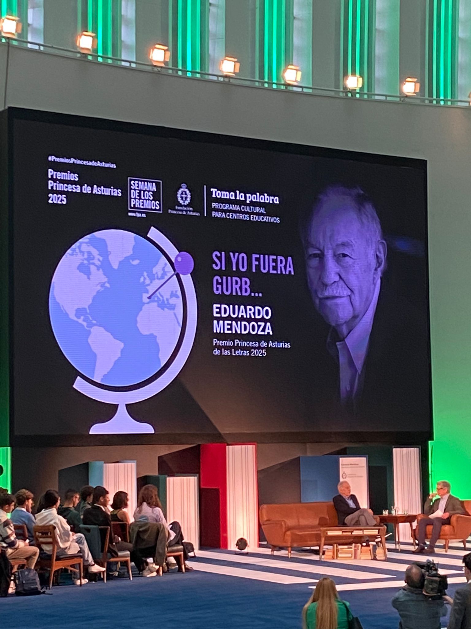 El alumnado que ha participado de forma voluntaria en el programa “Toma la palabra” de la Fundación Princesa de Asturias asistió ayer a un encuentro con el escritor Eduardo Mendoza.