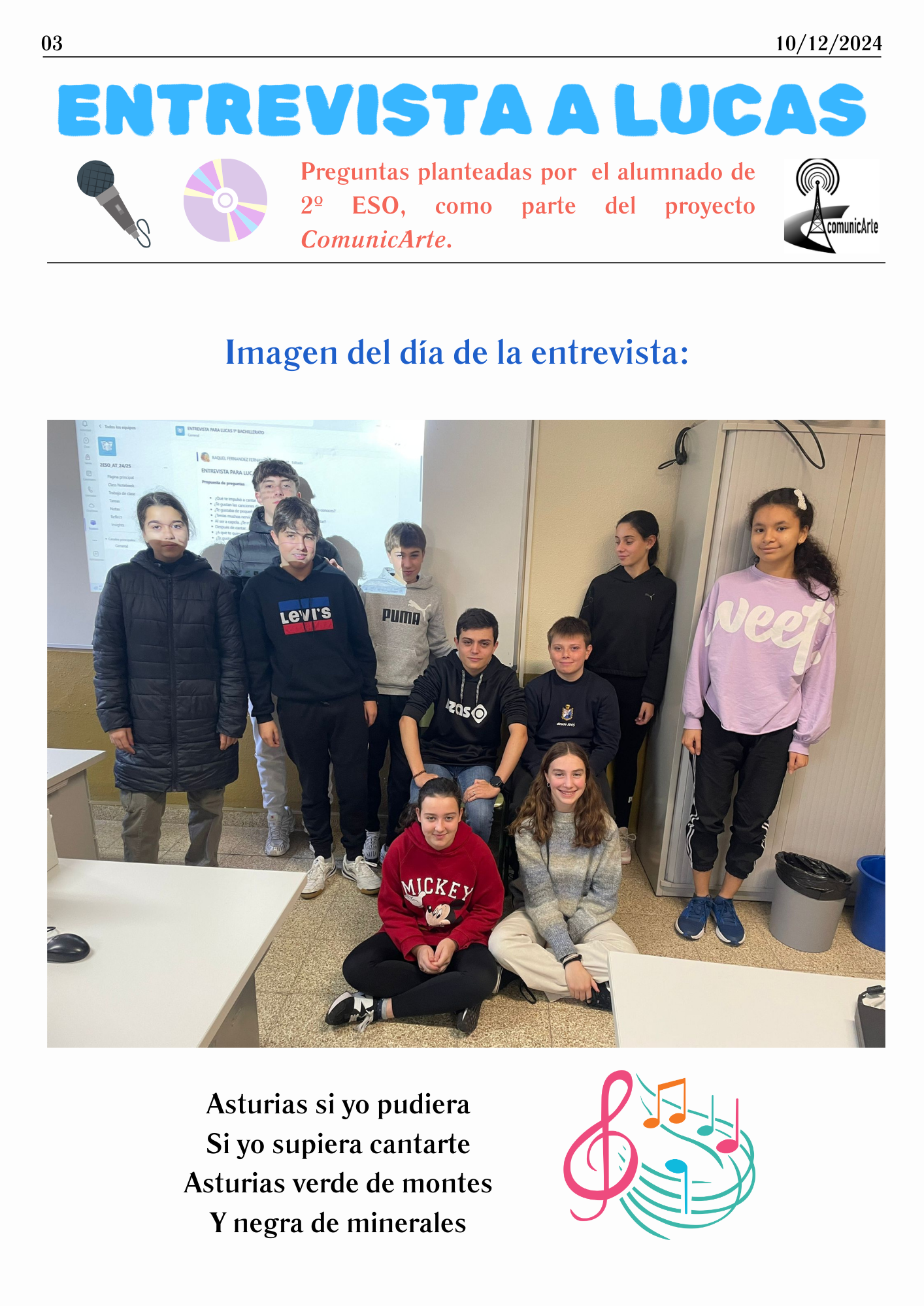 Noticias del centro trabajadas por el alumnado desde el proyecto ComunicArte: