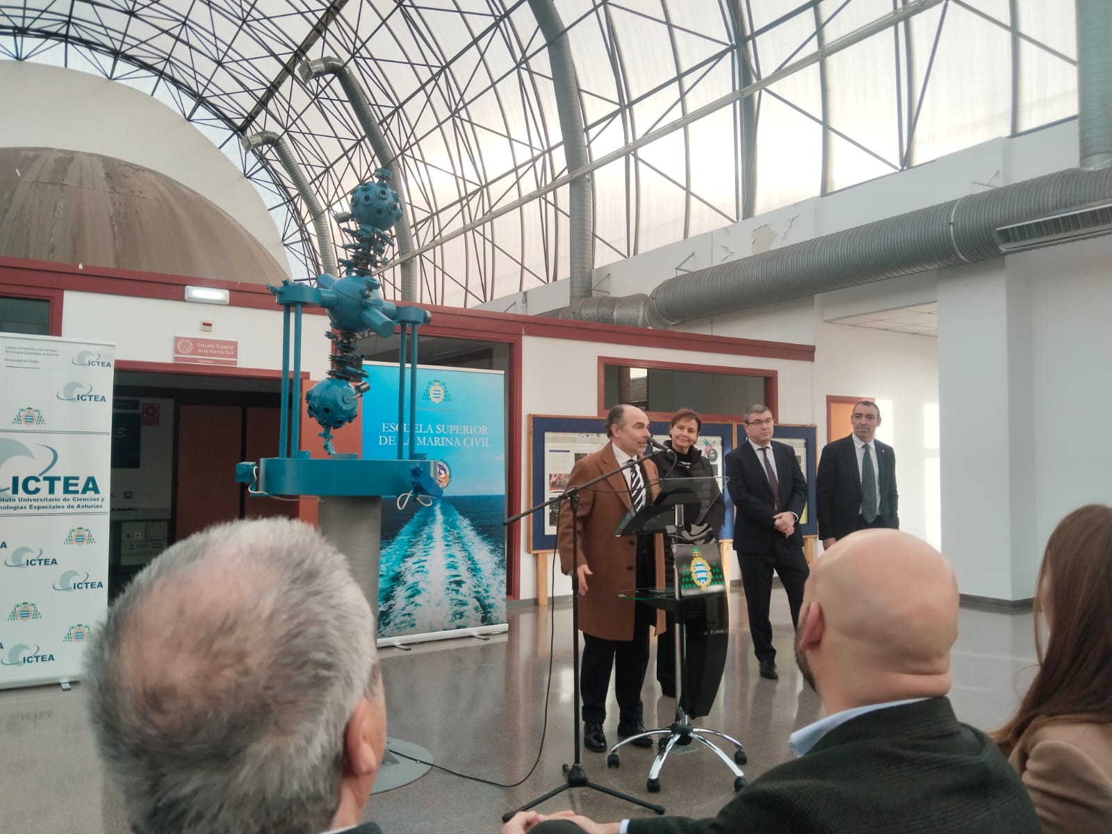 El rector de la universidad, Ignacio Villaverde, y la alcaldesa de Gijón, Carmen Moriyón, han presidido la inauguración oficial en la que han estado acompañados por el director de la escuela de Marina Civil, Rubén González, y por el director del Instituto Universitario de Ciencias y Tecnologías Espaciales de Asturias (ICTEA), Javier de Cos.
