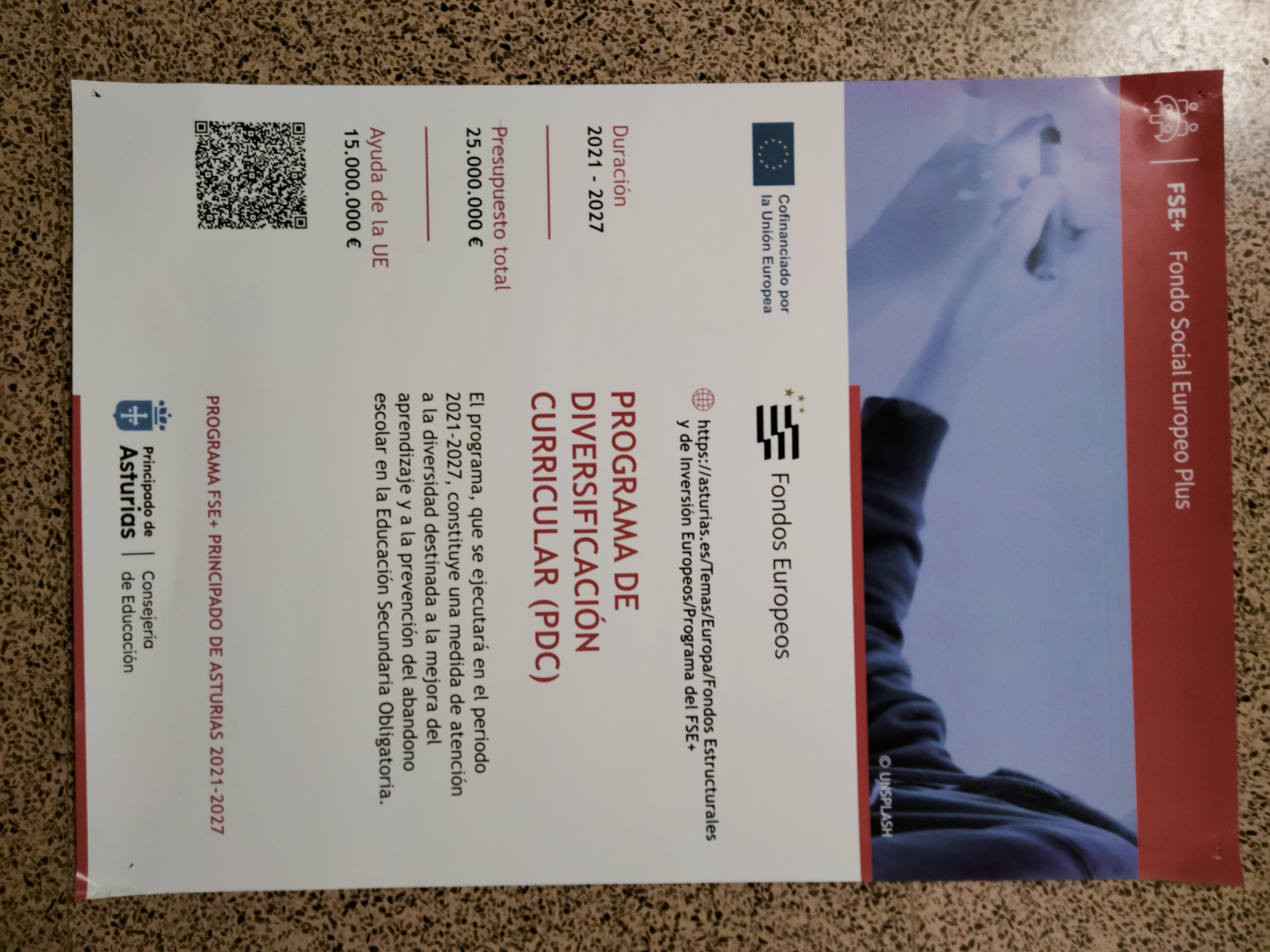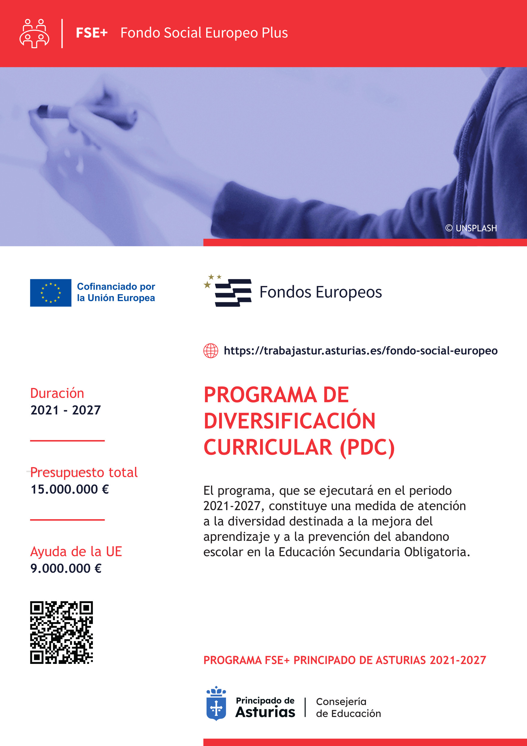 La implantación del Programa de diversificación curricular (PDC) está prevista dentro del Programa del Fondo Social Europeo+ del Principado de Asturias 2021-2027, incluida en la Prioridad 3 “Educación y formación”, objetivo específico f).