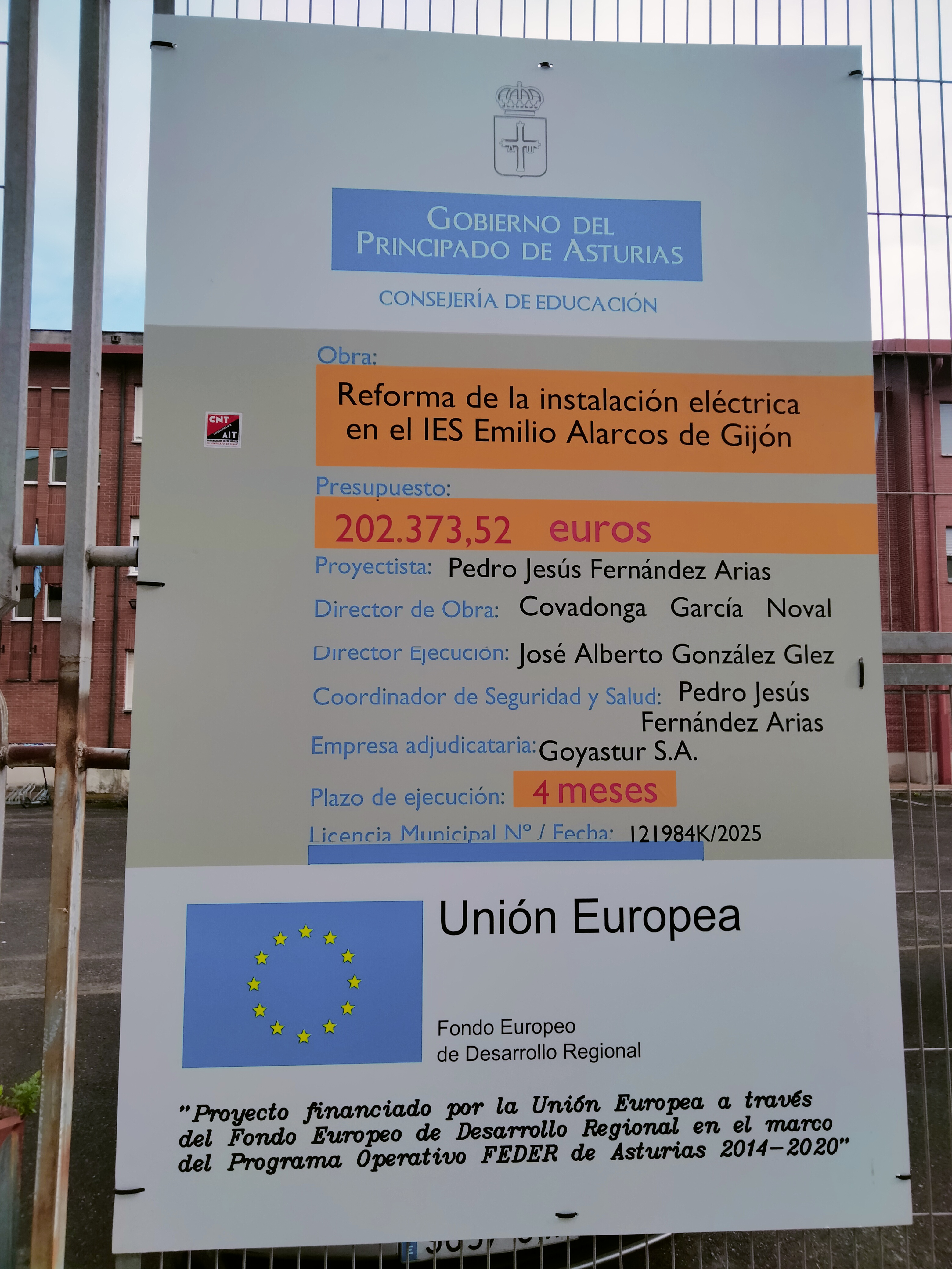 Como ya habréis podido ver por el cartel de la entrada, se están llevando a cabo obras en el centro para renovar la instalación eléctrica del edificio. La intervención se realiza manteniendo el instituto en funcionamiento.