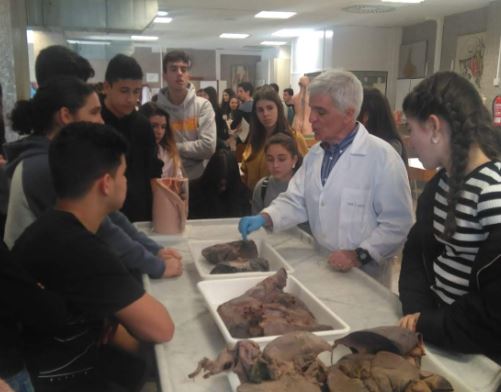 Al llegar a la facultad de medicina nos recibió muy atentamente D. Javier Naves, profesor de anatomía especializado en el sistema locomotor. La visita resultó muy interesante y didáctica,el alumnado pudo ver en "vivo y en directo" muchos de los órganos anatómicos estudiados a lo largo de todo el curso.