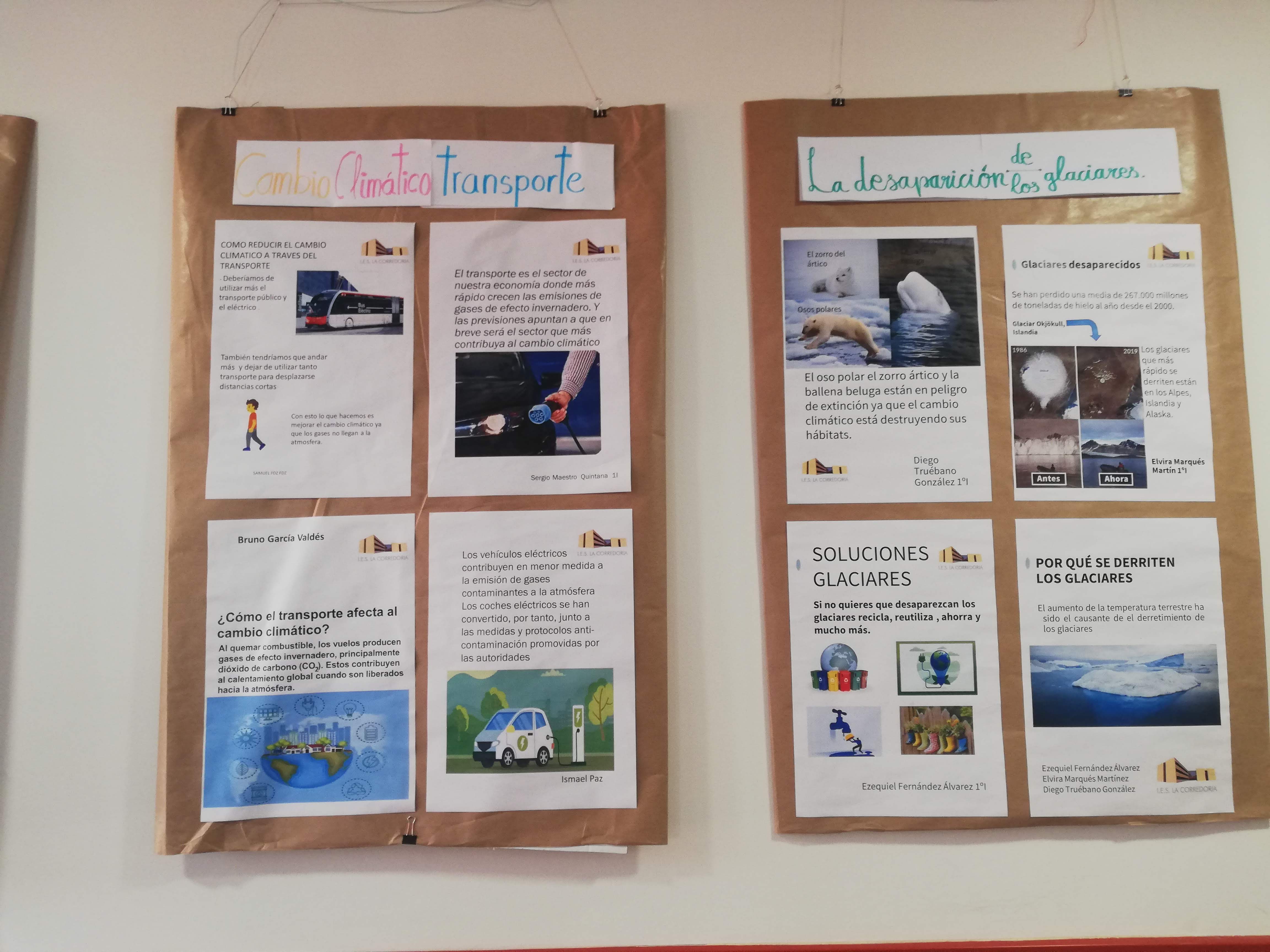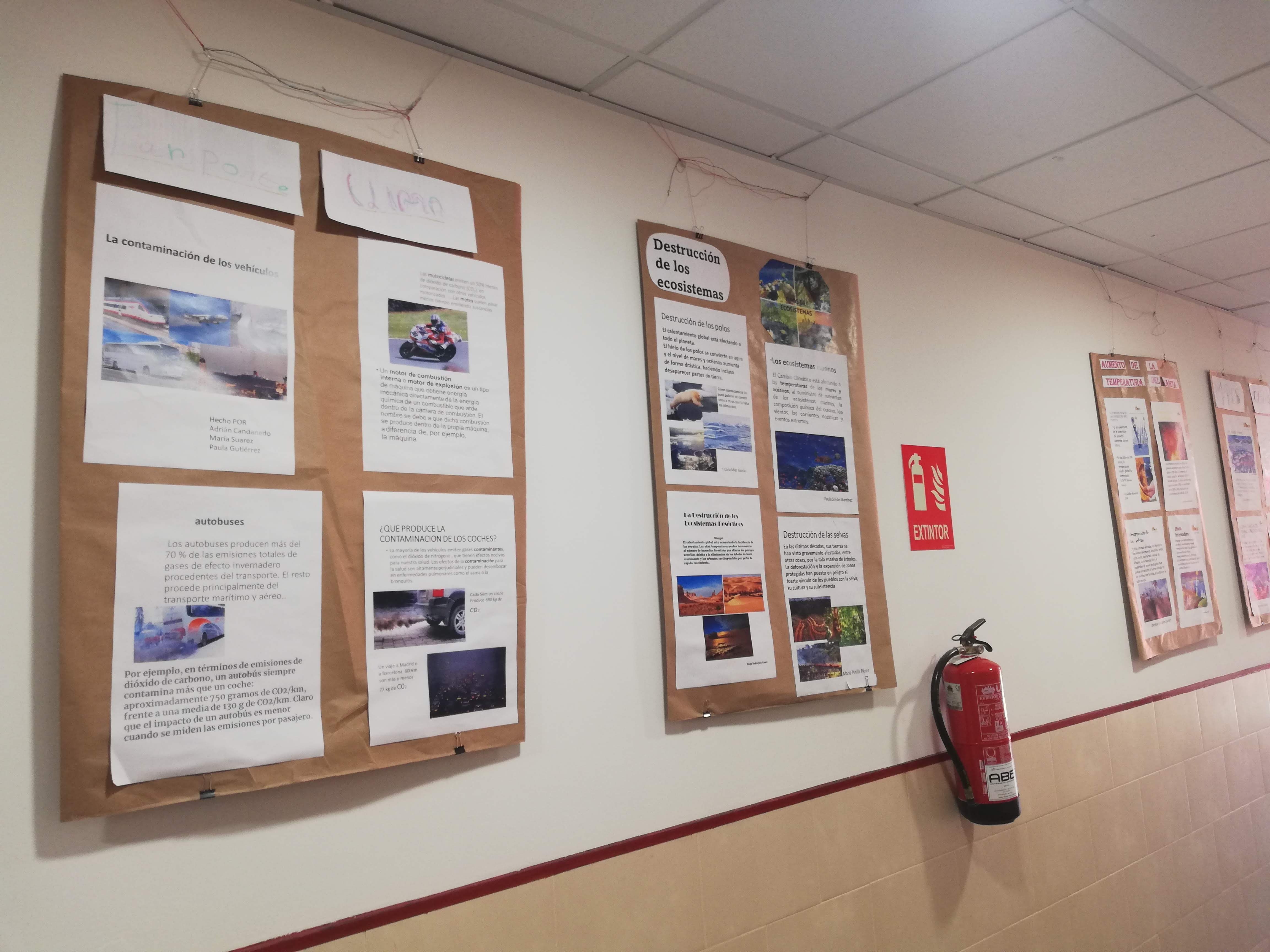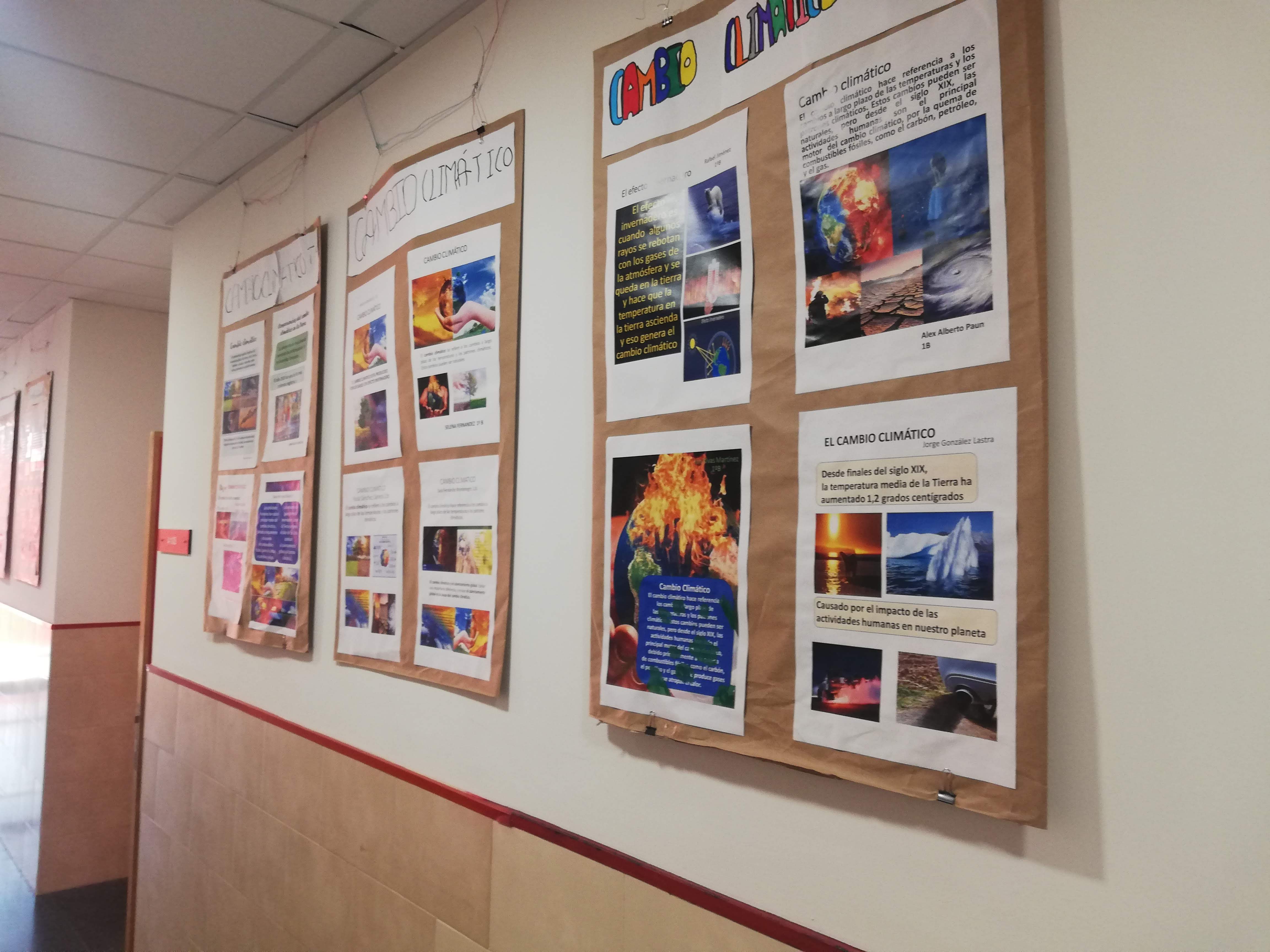 Una de las acciones de divulgación y concenciación de la necesidad de acciones para revertir el cambio climática, consiste en la elaboración de carteles explicativos que se ubican en una zona expositiva del IES .