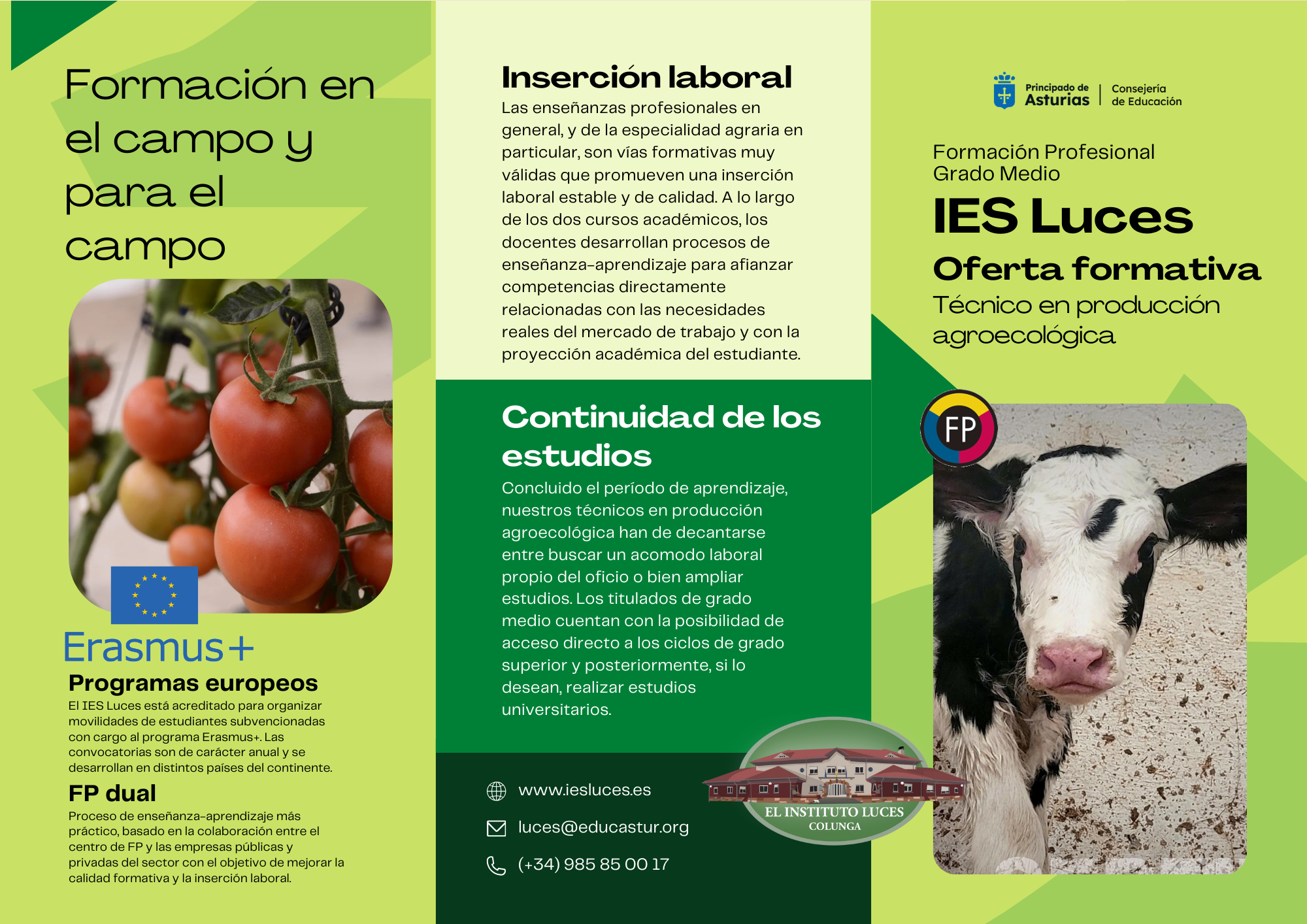 Información general sobre el ciclo formativo de grado medio de PRODUCCIÓN AGROECOLÓGICA (presencial). Se puede descargar toda la información en pdf.