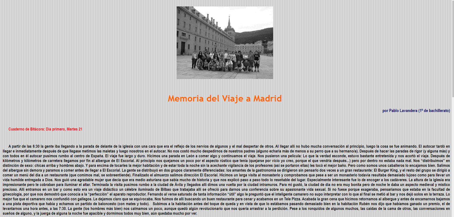 La página lucesWEB se asomó a las pantallas el 7 de septiembre del año 2002. La primera noticia informaba del premio recibido por los chicos de bachillerato en la convocatoria de Euroescola, y el primer contenido, la memoria final del "Viaje a Madrid", escrito por Pablo Lavandera.