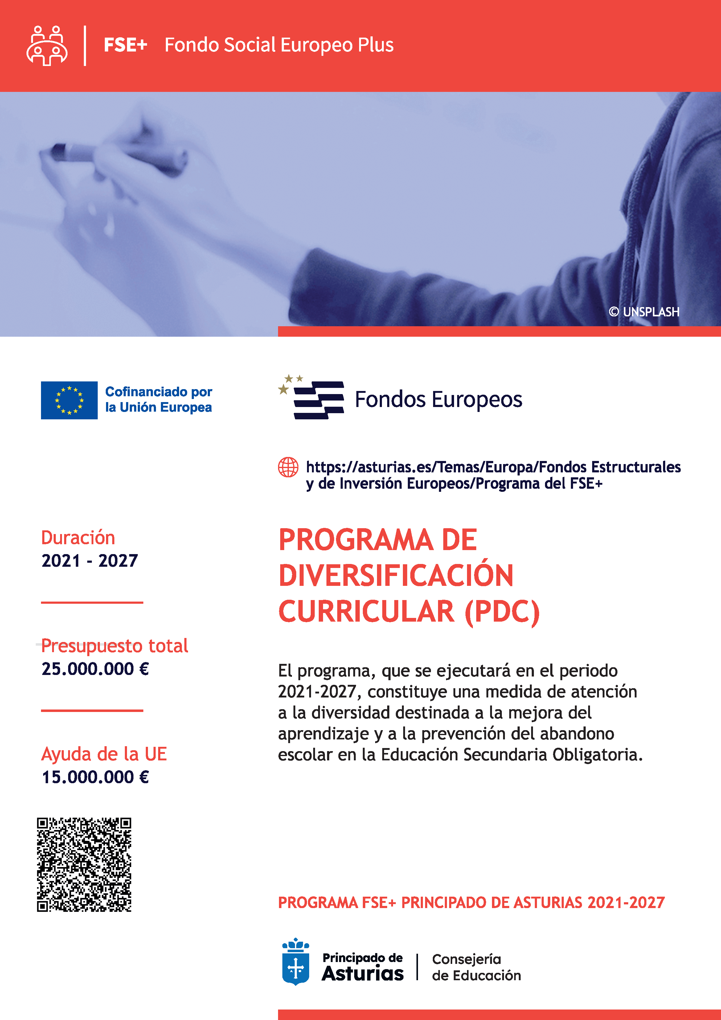 La implantación del Programa de diversificación curricular (PDC), está prevista dentro del Programa del Fondo Social Europeo+ del Principado de Asturias 2021-2027, incluida en la Prioridad 3 “Educación y formación”, objetivo específico f).