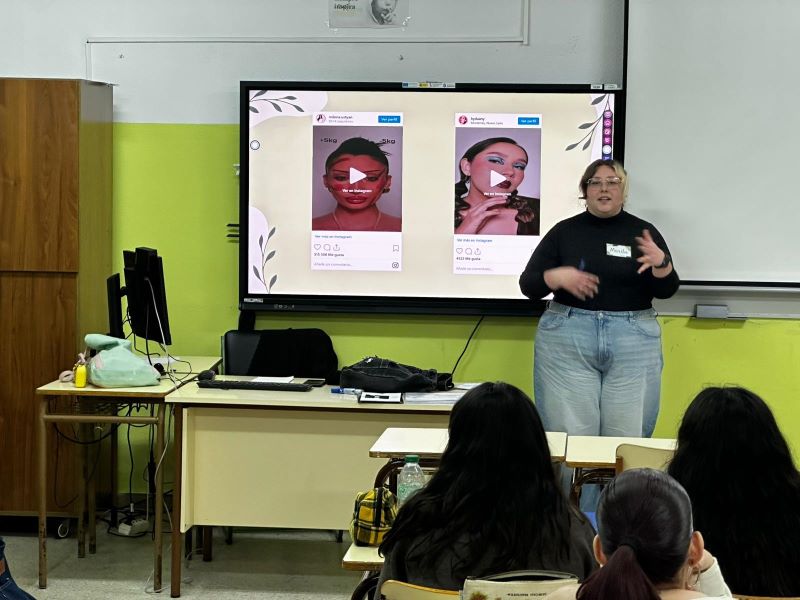 ¡Lo más destacable fue cómo consiguieron analizar las tendencias y cánones estéticos " con las gafas lila "puestas!, invitando a reflexionar sobre la importancia del empoderamiento y fomentar una belleza más inclusiva y libre de prejuicios. Las alumnas de estética han sido muy participativas generando un debate enriquecedor para crear una sinergia colaborativa importante entre los dos ciclos.