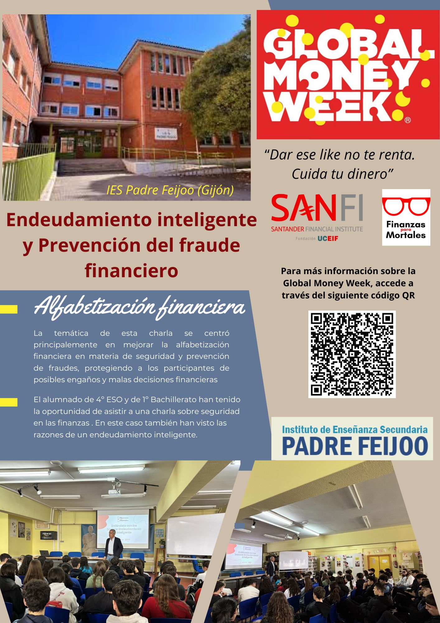Los alumnos y alumnas de 4º ESO y 1º Bachillerato del IES Feijoo han tenido la oportunidad de asistir a una charla organizada por el Dpto. Economía en la biblioteca de nuestro centro sobre "Endeudamiento Inteligente y Prevención del fraude financiero"