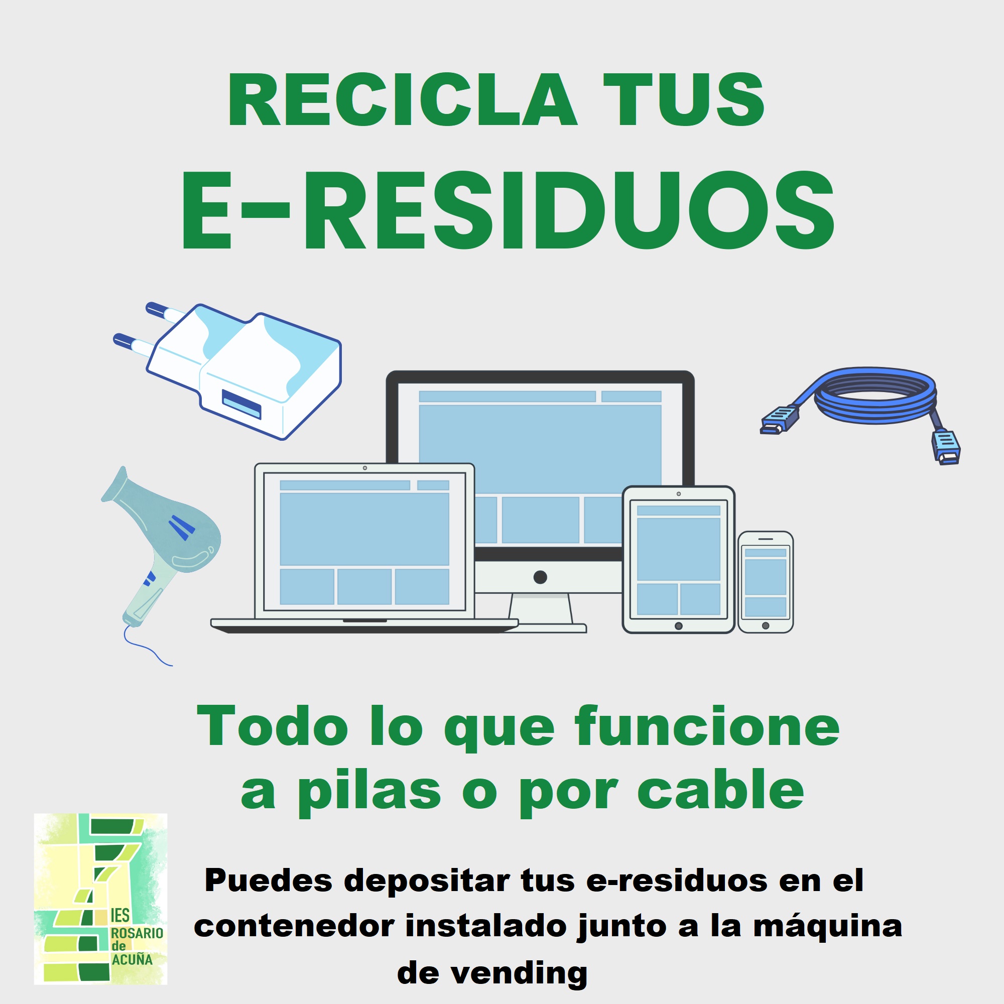Queremos desde aquí animar a toda la comunidad educativa a que haga uso de dicho contenedor en el caso de que se tengan aparatos de los que deshacerse.