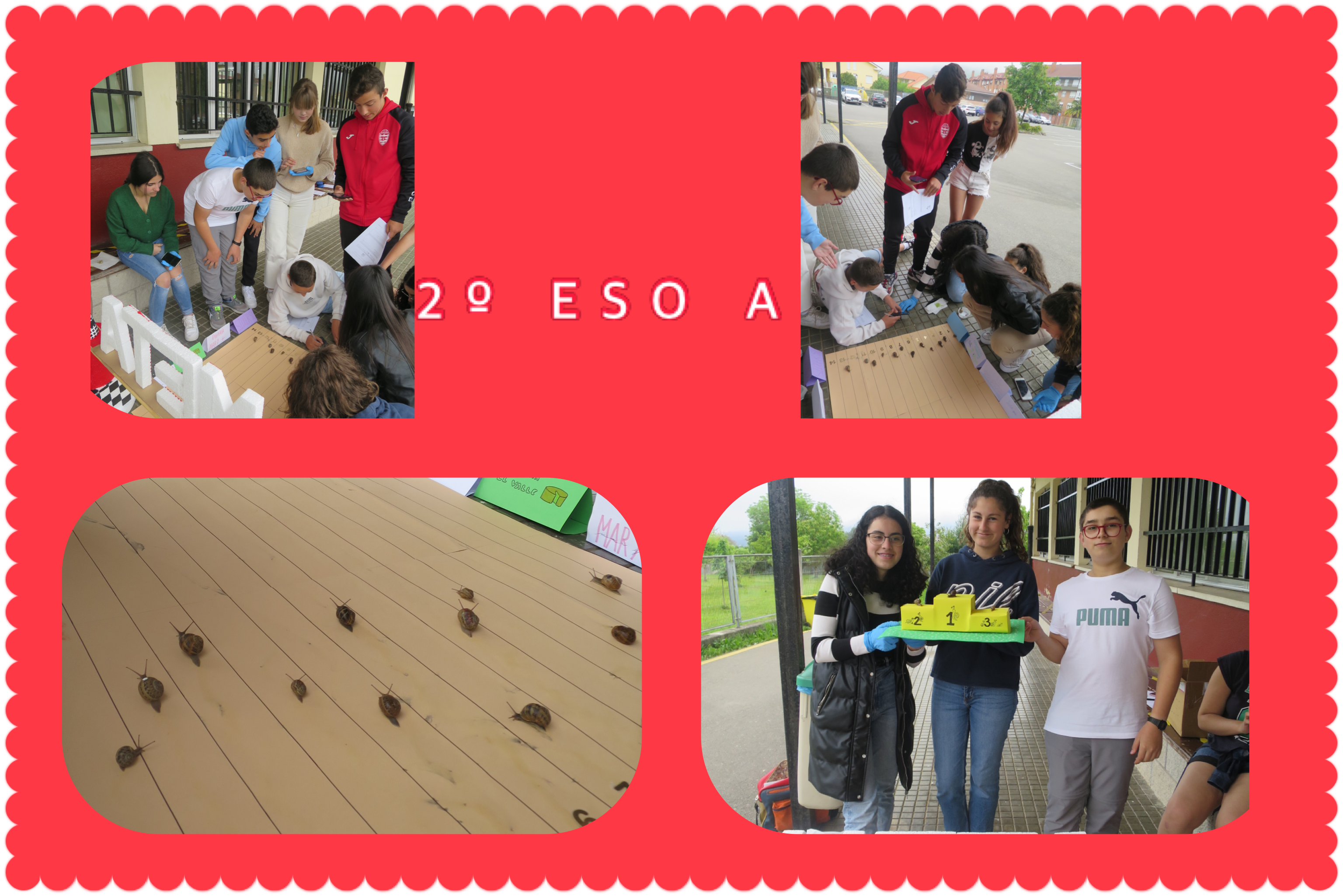 Como cada primavera, tiene lugar uno de los eventos deportivos más esperados por los alumnos de Física y Química de 2º ESO: el rally de caracoles, donde medirán sus fuerzas Derrape Dinoco, Bismuto, Juanito “el golondrinas”, Baby babas, Valentín o Paquito, por citar solo algunos de los participantes.