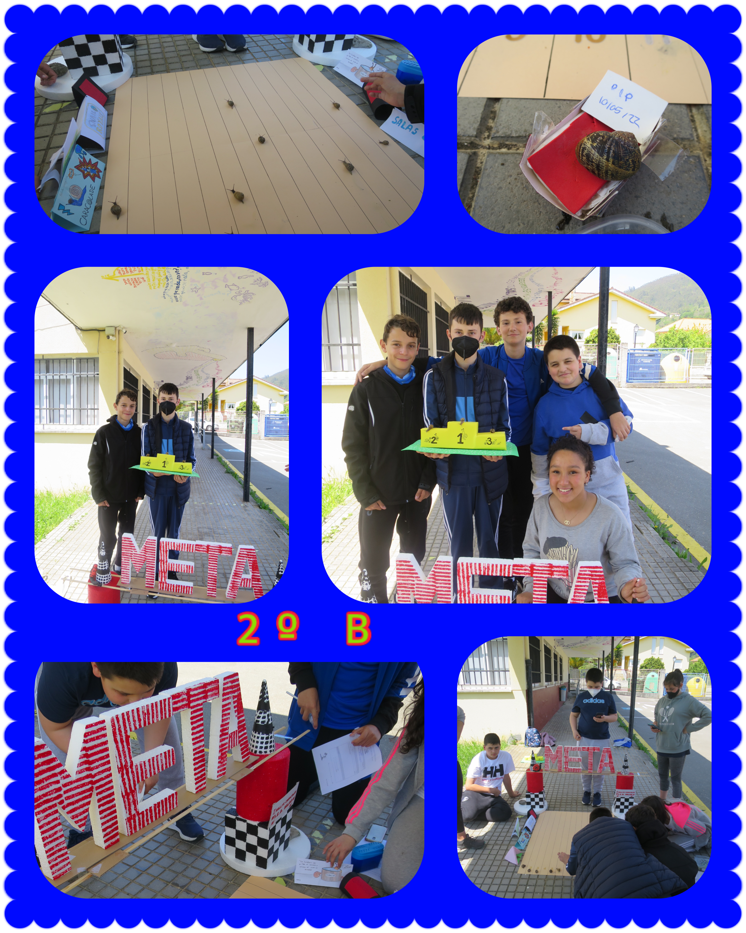 En el grupo 2º ESO B, el oro fue para Hamilton de Marcos García, la plata para Turbo de David Vega y el bronce para Randy Johnson Biever de Thalita Garnacho. Fue la carrera más accidentada de las tres y hubo varios abandonos, como el de Camawinga por fallo de motor. Otros fueron por problemas en la carrocería, por lo que solamente cruzaron la meta un total de ocho caracoles de los catorce participantes.