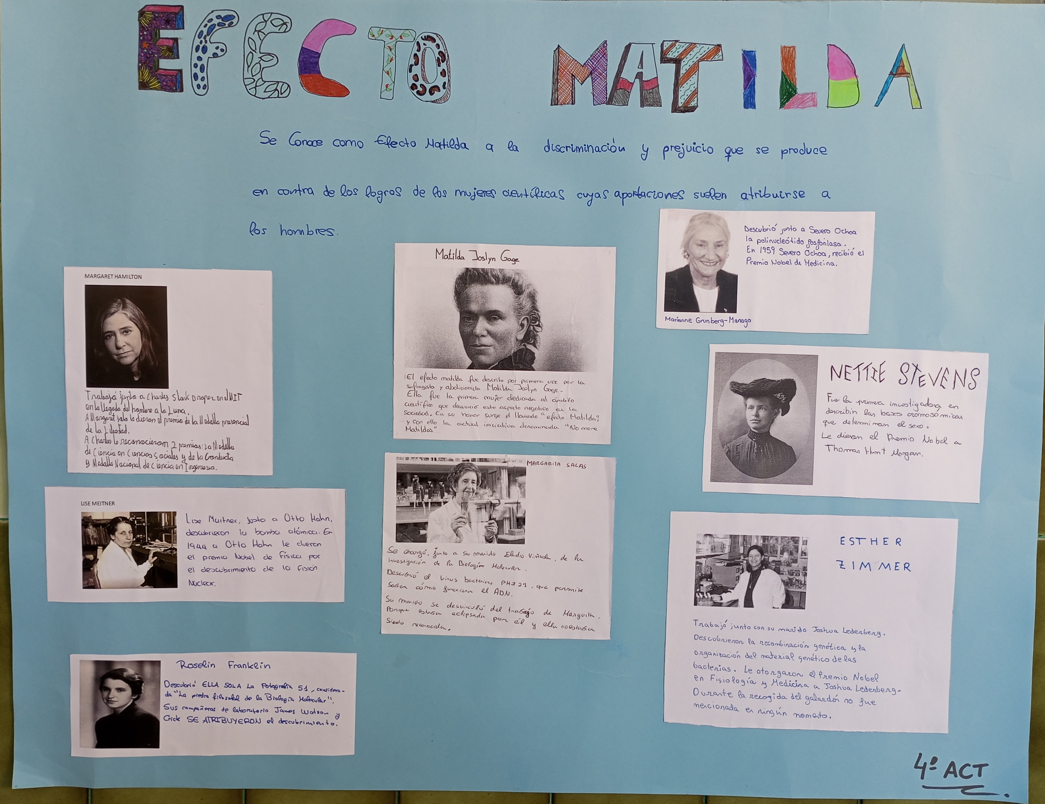 El alumnado de 4º ESO Diversificación celebró este curso el día internacional de la Mujer y  la niña en la ciencia (11 de febrero) y el día de la mujer (8 de marzo) realizando un trabajo de documentación y reflexión sobre el efecto Matilda.