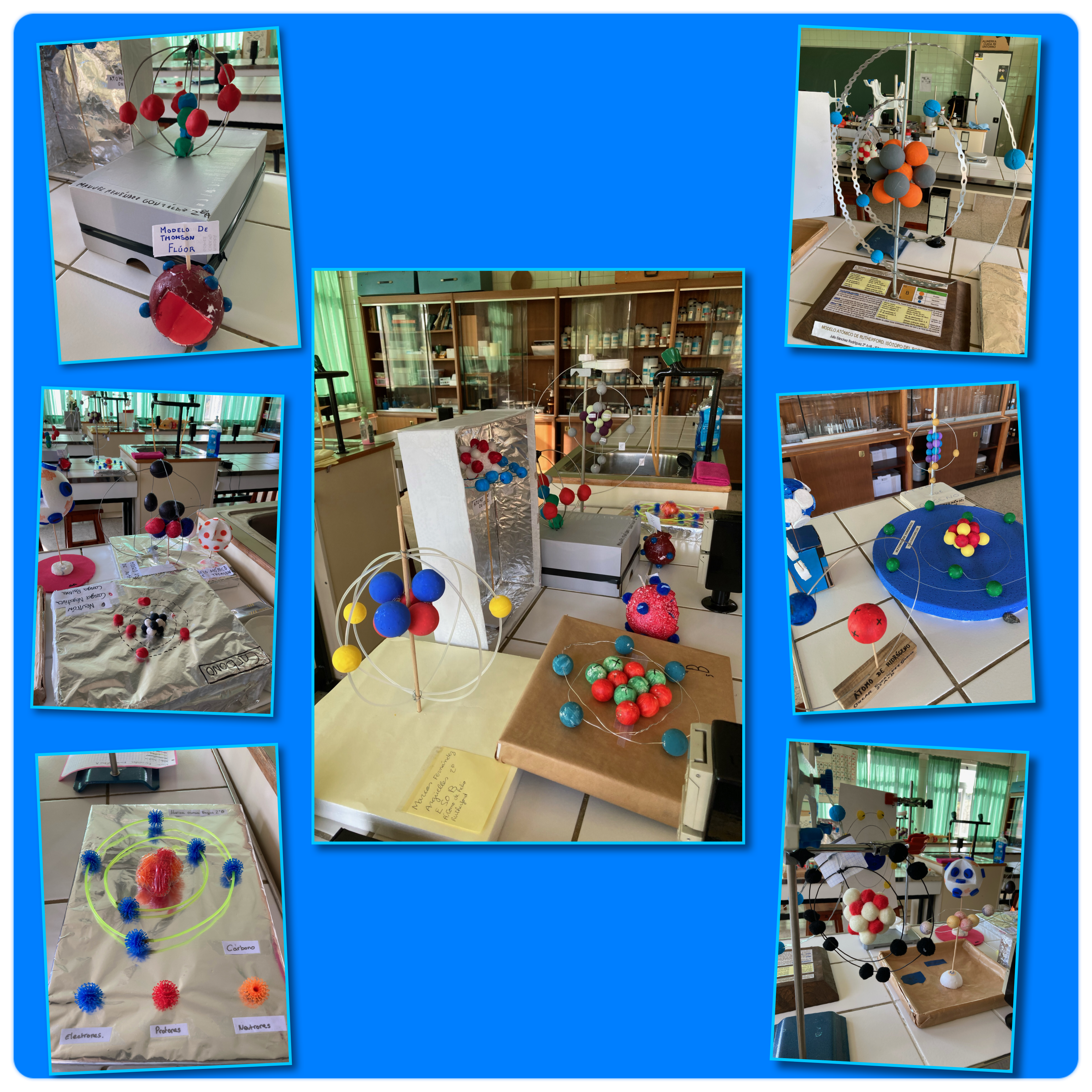 Nuestros alumnos de 2º ESO, en su estudio de la estructura del átomo, han presentado sus propios modelos atómicos, realizados en diversos materiales, representando distintos elementos y que nos pueden ayudar a comprender un poco mejor cómo se organiza la materia en niveles tan pequeños.