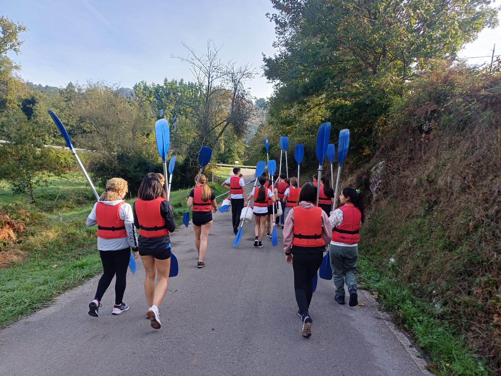 Todos los alumnos iban equipados de chalecos y palas, y aunque a algunos remar se les hizo un poco cuesta arriba, la aventura mereció mucho la pena y el día soleado acompañó. Muchos alumnos- y alguna profe- terminaron la jornada agotados , dándose un baño en el río.