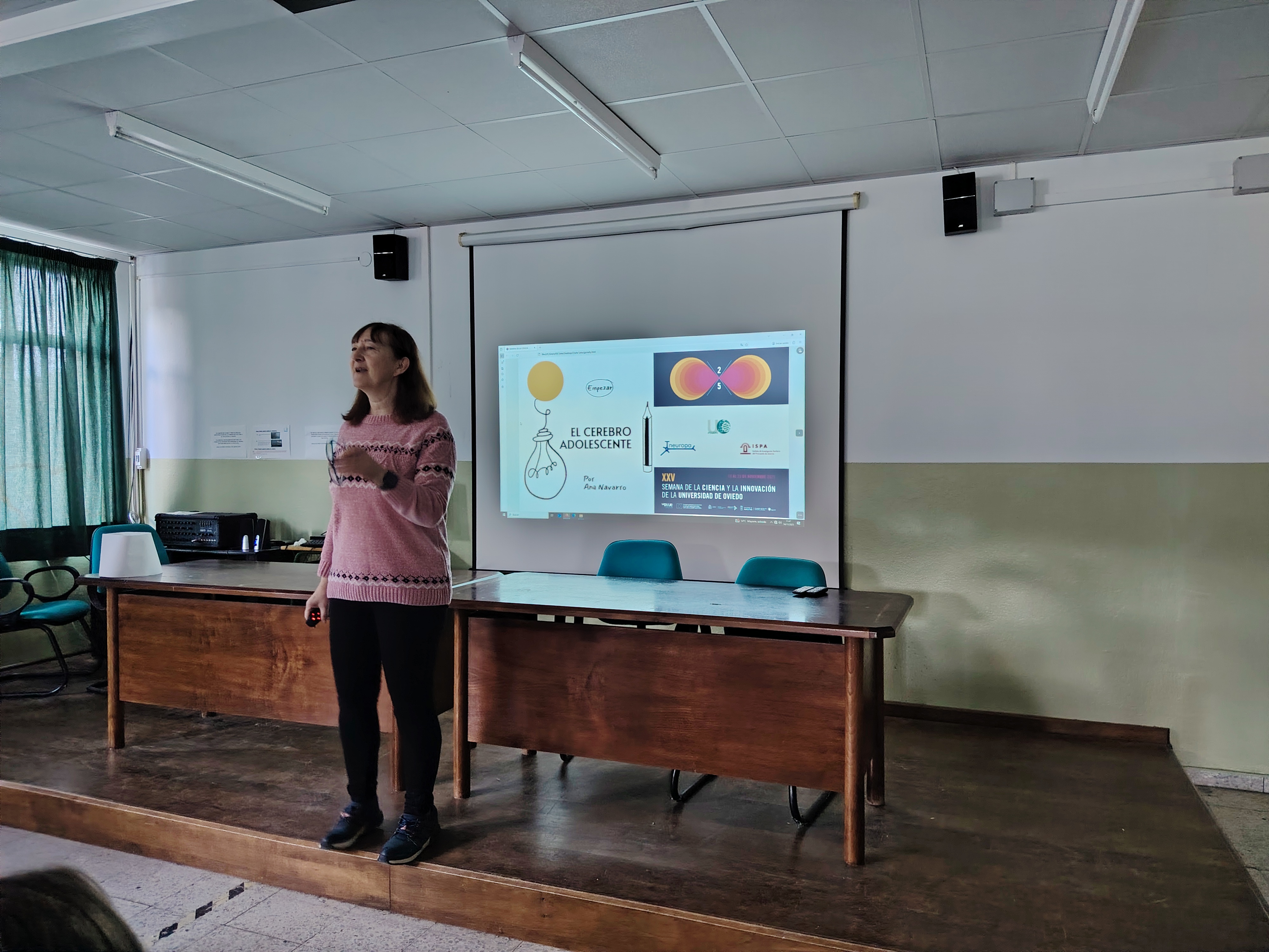 El viernes 14 de noviembre de 2025, la neurobióloga y divulgadora de la Universidad de Oviedo Ana María impartió, dentro de las charlas y talleres de la Semana de la Ciencia 2025, la charla “El cerebro adolescente”