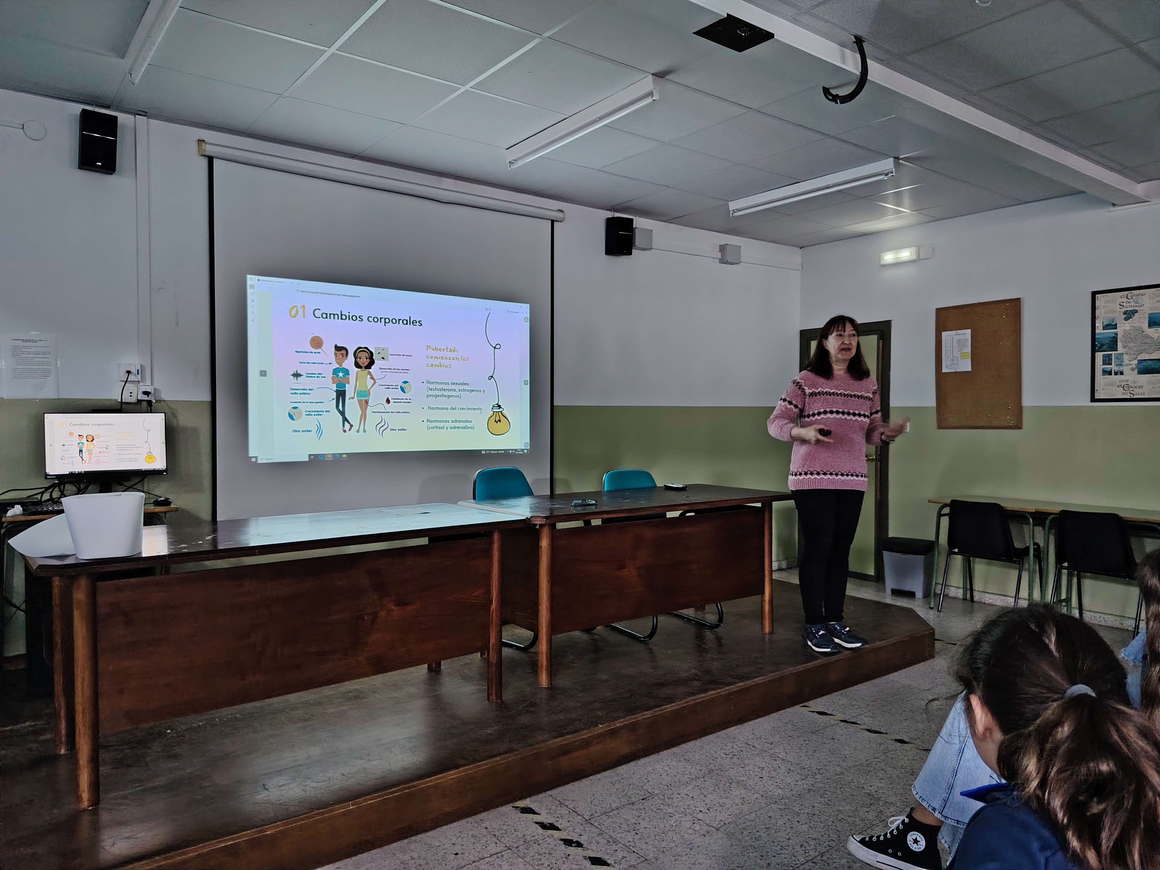 La charla estaba organizada, en un principio, para el alumnado de psicología de 2º Bachillerato, pero se fueron sumando alumnos y alumnas de Biología y Geología y Ciencias Ambientales de 1º Bachillerato, 4º ESO que se encontraban en su hora de tutoría y alumnado de 2º ESO.
