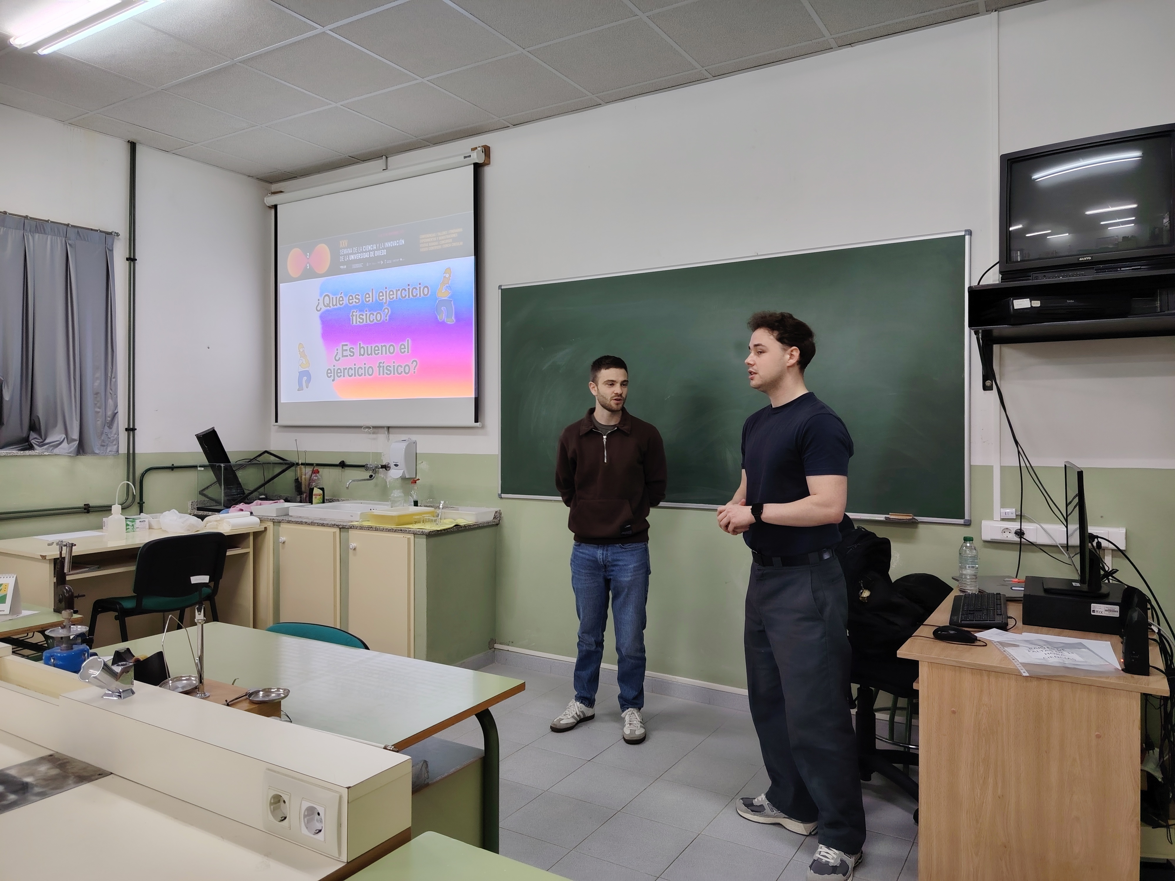 El 10 de noviembre de 2025 el alumnado de Biología y Geología 4º ESO y Biología 2º Bachillerato participó en el taller: “el ejercicio en tu ADN” en el que un grupo de jóvenes investigadores dirigidos por David Fernández Vivero explicaron al alumnado la relación entre nuestros genes y nuestras capacidades motoras.
