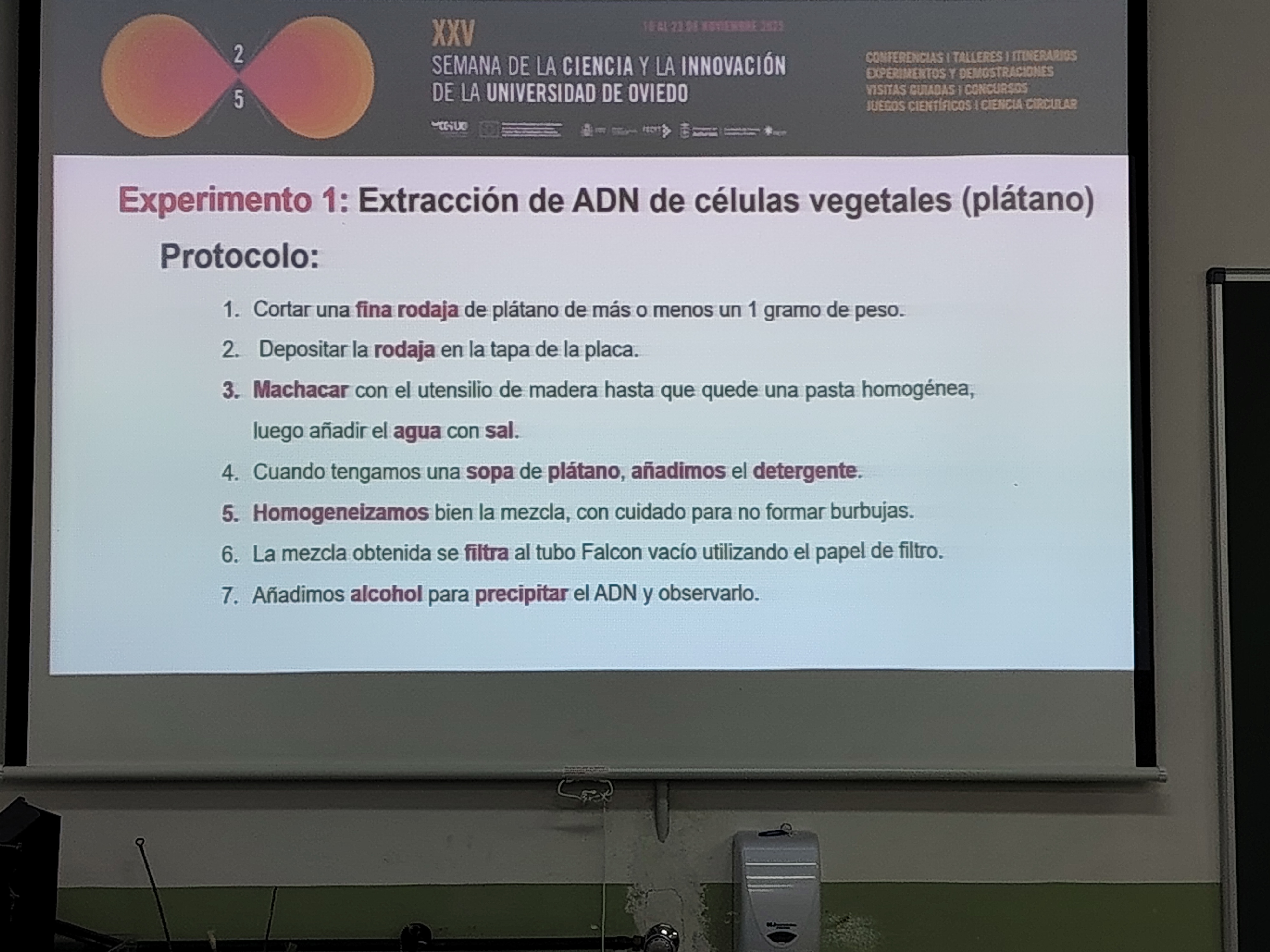 Pero no fue la típica charla, los alumnos y alumnas realizaron una extracción de ADN de un plátano antes de analizar como nuestra información genética y el lugar de nacimiento influye en los deportes más realizados.