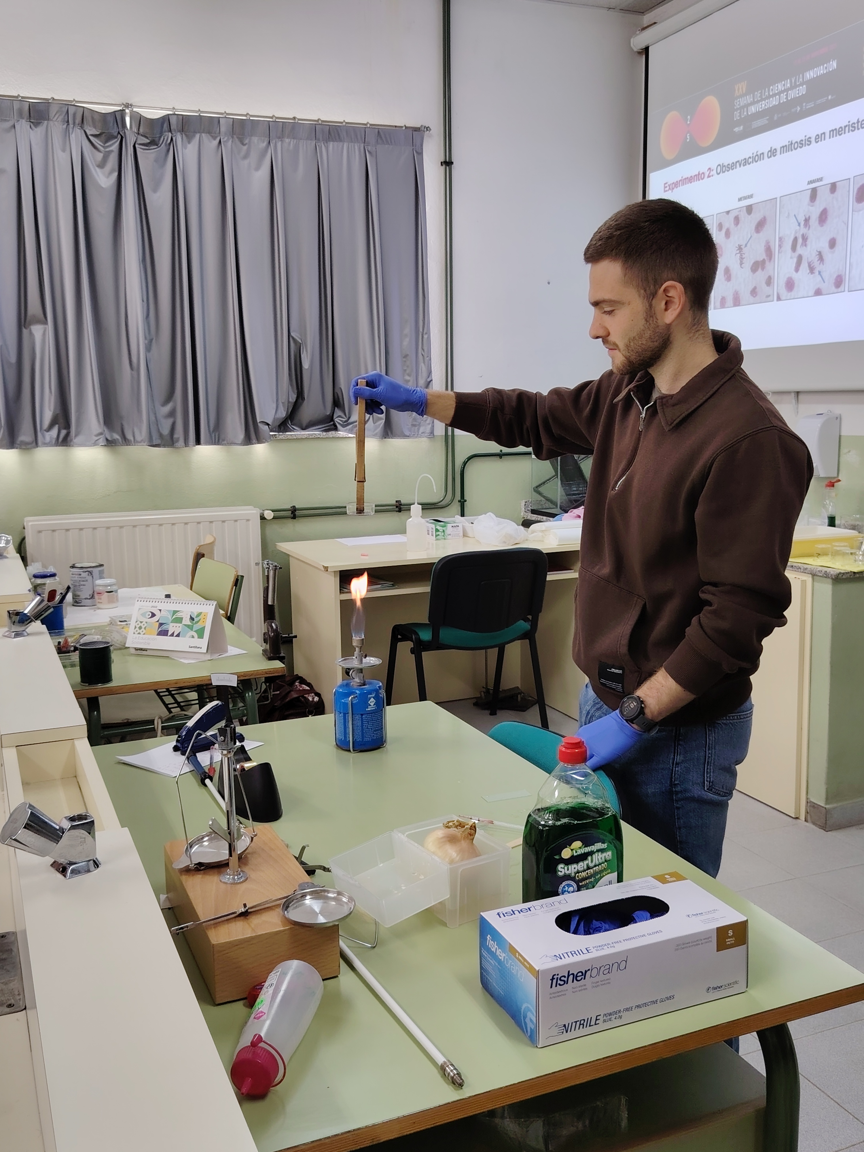 Por último, observaron cómo se tiñen los cromosomas de una cebolla en mitosis para, después, observarla al microscopio.