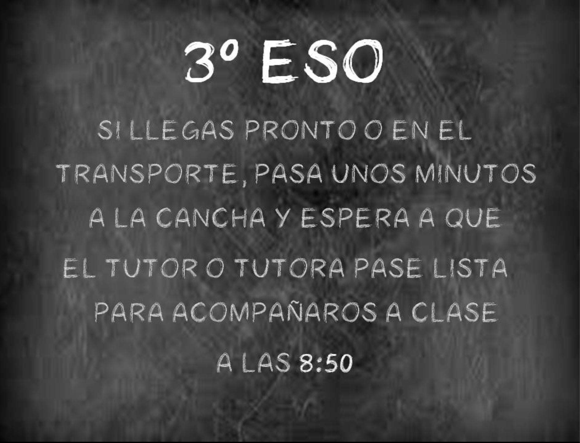 | 3º ESO/PMAR | 8:50 | SALÓN DE ACTOS |