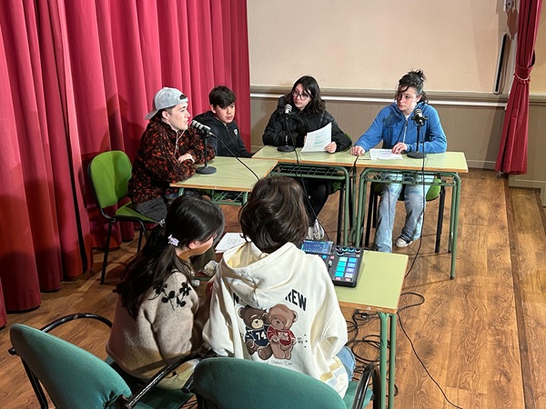 La visita tuvo un motivo muy especial: la grabación de un programa de radio en nuestro centro, que se realizó durante el recreo, convirtiendo ese tiempo en una experiencia única e inolvidable para el alumnado y el profesorado. Y como no podía ser de otra manera, el freestyle no faltó.