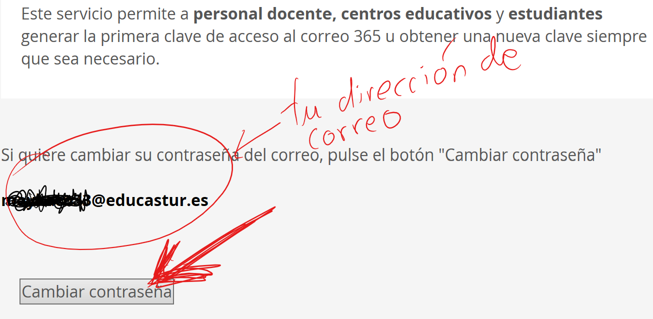 Las credenciales de Educastur constan de un nombre de Usuario que asigna la Consejería de Educación y una Clave. No dan acceso directamente al Correo 365, pero permiten obtener la constraseña para hacerlo.