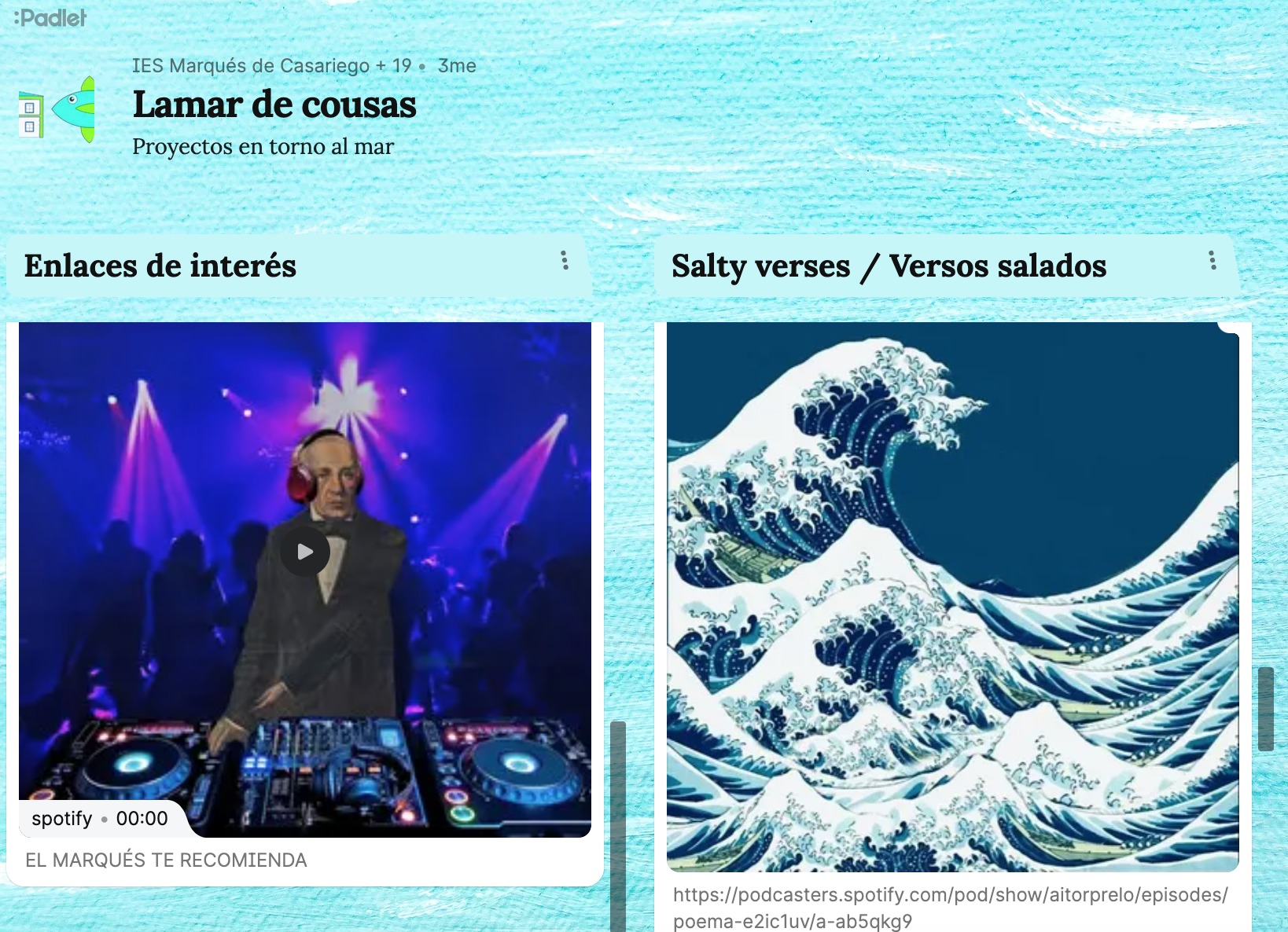 Realizado por todo el alumnado de ESO del IES Marqués de Casariego como un proyecto interdisciplinar, abarca creaciones e investigaciones relacionadas con el mar, elemento esencial de nuestro entorno. Disfruta con la música, poemas, leyendas, dibujos e investigaciones.
