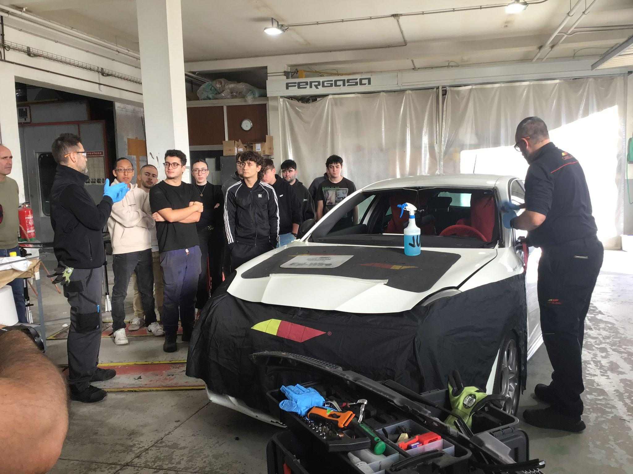 Esta tarde el alumnado de FPGM de Electromecánica de maquinaria y Mecánica de vehículos ha contado con la demostración de reparación y cambio de lunas de Carglass.