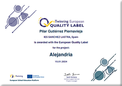 El proyecto eTwinning "ArThenea" desarrollado en nuestro centro el curso pasado ha sido galardonado con el Sello de Calidad Nacional. Enhorabuena al profesorado y alumnado participante, que sigue comprometido y trabajando en proyectos europeos.