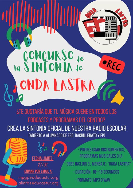 ¿Quieres que tu música suene en la radio escolar? Participa creando la sintonía oficial de Onda Lastra. Abierto a alumnado de ESO, Bachillerato y FP.
