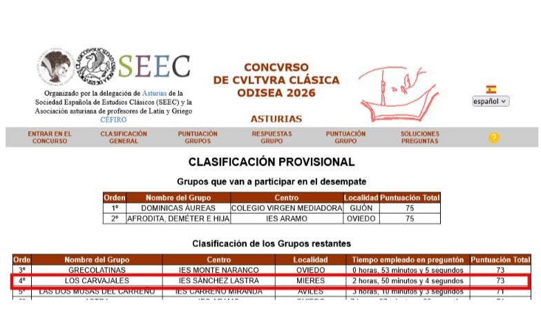 Los alumnos y alumnas del Departamento de Cultura Clásica, de las materias Latín 4º, Latín I, Griego I y Griego II han participado en el Concurso Odisea de Cultura Clásica celebrado en Asturias de forma online, obteniendo un gran resultado. Se organizaron en seis equipos: dos en cuarto, tres en primero y uno en segundo de bachillerato.