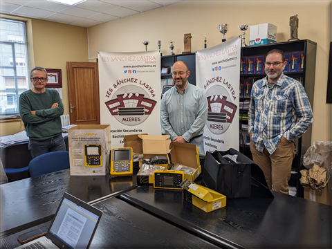 Recepción del material entregado como parte de Plan de ayudas europeas del fondo de transición justa. En el acto de entrega, participaron representantes de la consejería y del IES Sánchez Lastra. Los equipos entregados son; un controlador multifunción modelo CA 6131 y un equipo analizador de redes Qualistar+ modelo CA 8336, ambos de la marca Chauvin_arnoux