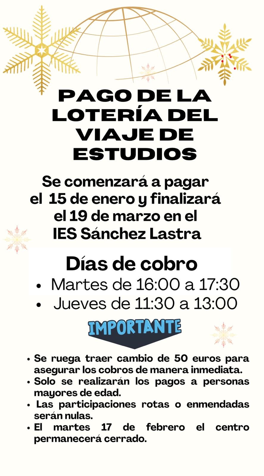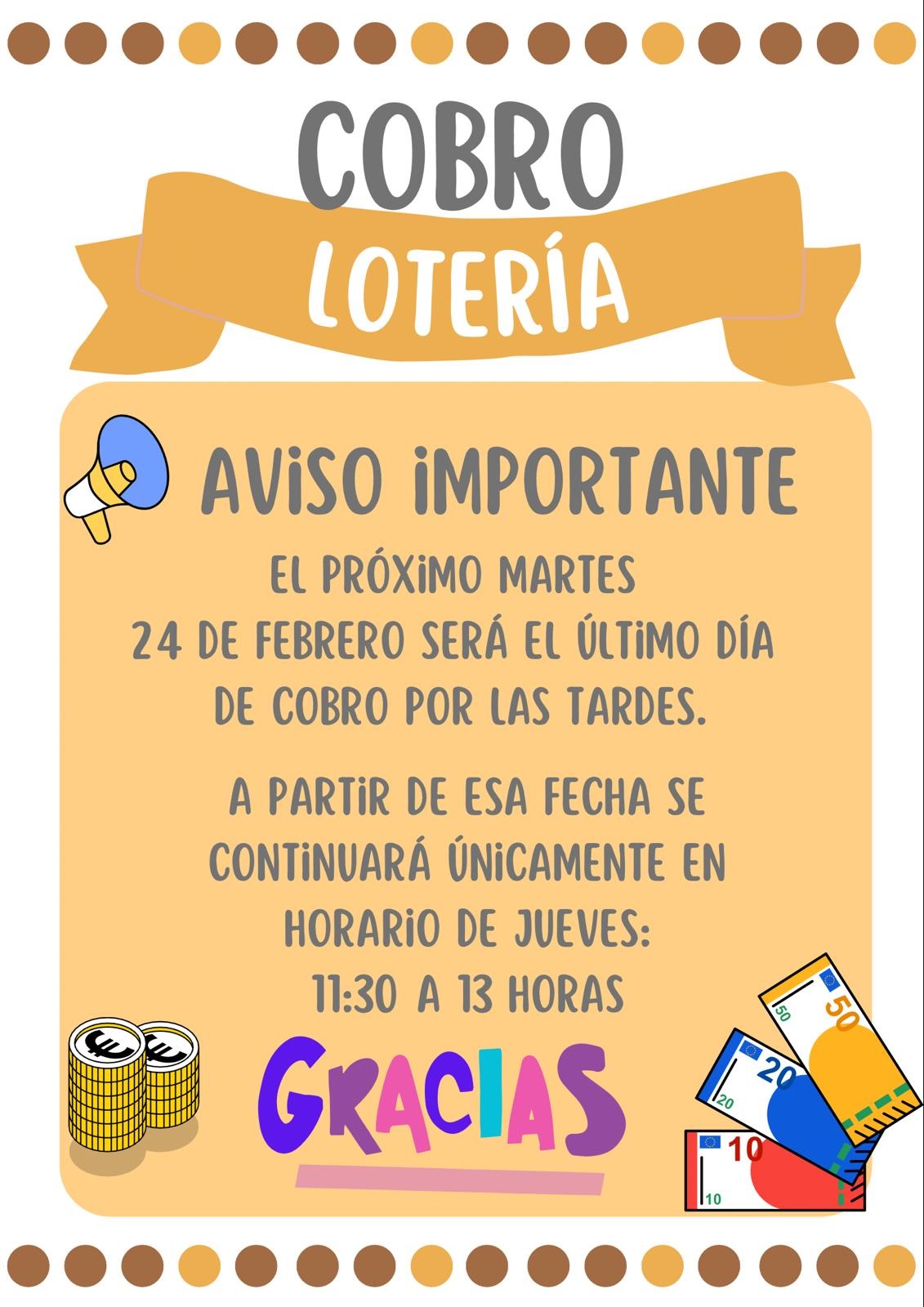 Aviso cobro Lotería de Navidad