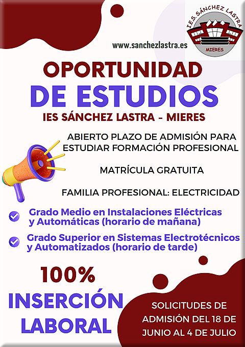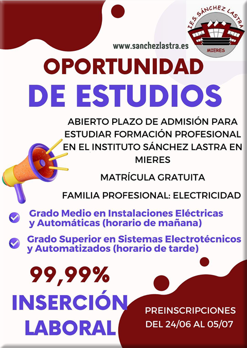 📣📢 Aún estás a tiempo de matricularte en muchos de nuestros ciclos formativos. Plazo de matrícula abierto hasta el 11 de septiembre. Consulta nuestra oferta formativa en la página web.
