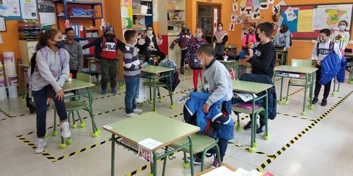 Hemos reutilizado las pelotas de tenis que nos han donado la escuela "NETPADEL" y el "Patronato deportivo municipal de Siero(P.D.M)" para hacer de la clase de 5º un lugar más silencioso y acogedor. A medida que nos vayan donando más se irán uniendo el resto de las clases pero, por ahora, así ha quedado la nuestra.